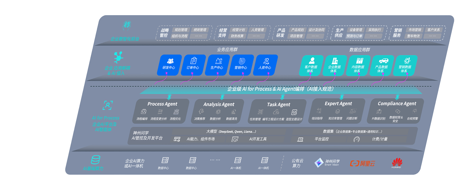 端到端的一站式AI工作空间深度融合了从企业战略规划到日常经营的全流程业务板块,,,定向解决车企内部领域多、、部门多、、、链条长、、场景碎片化等难题,,,支持车企快速构建以AI为核心的生产力写作体系,,,实现任务执行与AI能力的无缝集成与交互