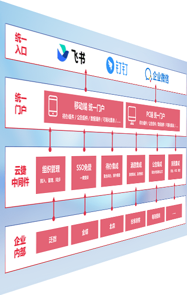对协作平台提供支持服务,,支持企业应用与协作平台对接,,,包含组织同步、、、消息集成、、、、待办集成等。。支持目前主流的协作平台:钉钉、、、企微和飞书。。。。